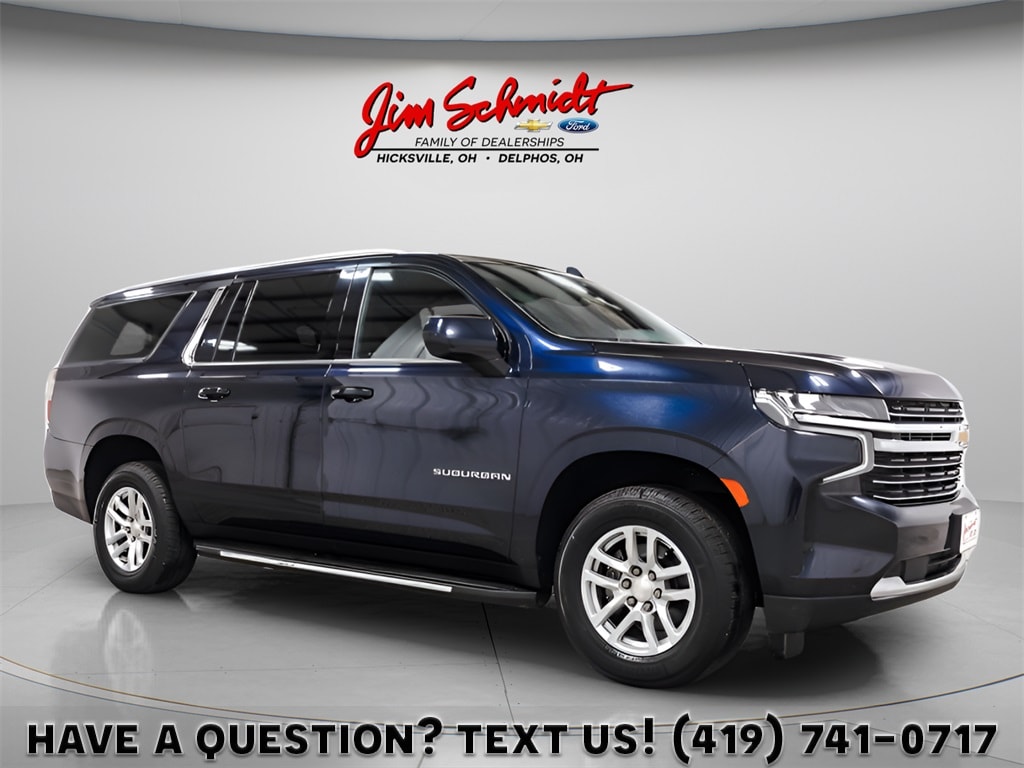 CARFAX One-Owner. Serviced, Inspected & fully detailed, 10-Way Power Driver & Passenger Seat Adjusters, 1st & 2nd Row Color-Keyed Carpeted Floor Mats, 3.23 Rear Axle Ratio, 3rd row seats: split-bench, 4-Wheel Disc Brakes, 9 Speakers, ABS brakes, Air Conditioning, Alloy wheels, AM/FM radio: SiriusXM with 360L, Apple CarPlay/Android Auto, Auto High-beam Headlights, Auto-Dimming Inside Rear-View Mirror, Auto-dimming Rear-View mirror, Automatic Stop/Start, Automatic temperature control, Bose 9-Speaker Stereo Audio System Feature, Brake assist, Bright Front & Rear Door Sill Plates, Bumpers: body-color, Color-Keyed Carpeting Floor Covering, Compass, Delay-off headlights, Driver & Front Outboard Passenger Airbags, Driver door bin, Driver vanity mirror, Dual front impact airbags, Dual front side impact airbags, Electronic Stability Control, Emergency communication system: OnStar and Chevrolet connected services capable, Enhanced Driver Information Center, Floor Console w/Storage Area, Four wheel independent suspension, Front & Rear Park Assist, Front anti-roll bar, Front Bucket Seats, Front Center Armrest, Front dual zone A/C, Front reading lights, Fully automatic headlights, Garage door transmitter, Hands-Free Rear Power Programmable Liftgate, Heated door mirrors, Heated Driver & Front Passenger Seats, Heated front seats, Illuminated entry, Infotainment Display, Leather steering wheel, Leather-Appointed Seating, Leather-Wrapped Steering Wheel, LED Daytime Running Lamps, License Plate Front Mounting Package, Low tire pressure warning, Memory seat, Memory Settings For Driver, Navigation System, Not Equipped w/Front & Rear Park Assist, Not Equipped w/Heated/Ventilated Front Seats, Not Equipped w/Steering Column Lock, Occupant sensing airbag, Outside temperature display, Overhead airbag, Overhead console, Panic alarm, Passenger door bin, Passenger vanity mirror, Power door mirrors, Power driver seat, Power Liftgate, Power passenger seat, Power steering, Power windows, Preferred Equipment Group 1LT, Premium audio system: Chevrolet Infotainment 3 Premium, Premium Smooth Ride Suspension, Radio: Chevrolet Infotainment 3 Premium System, Rain sensing wipers, Rear air conditioning, Rear anti-roll bar, Rear reading lights, Rear seat center armrest, Rear window defroster, Rear window wiper, Remote keyless entry, Remote Start, Roof rack: rails only, Security system, SiriusXM Radio w/360L, Speed control, Speed-sensing steering, Split folding rear seat, Spoiler, Start/Stop System Disable Button, Steering wheel mounted audio controls, Tachometer, Telescoping steering wheel, Tilt steering wheel, Traction control, Trip computer, Universal Home Remote, Variably intermittent wipers, Voltmeter, Wheels: 18" x 8.5" Bright Silver Painted Aluminum, Wireless Charging. Odometer is 14722 miles below market average!