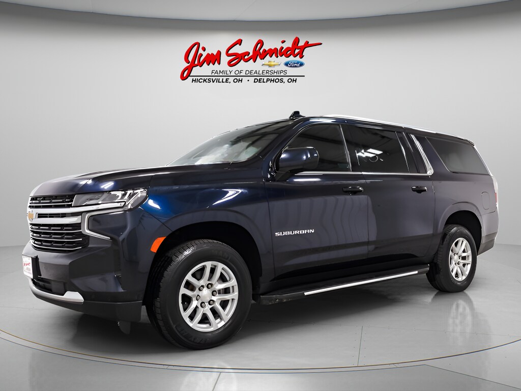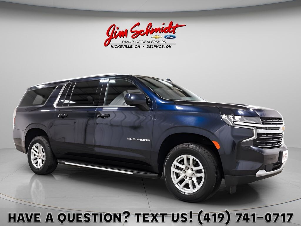 2022 Chevrolet Suburban LT CARFAX One-Owner. EcoTec3 5.3L V8 4D Sport Utility 4WD 10-Speed Automatic with Overdrive LT Apple Carplay / Android Auto, Serviced, Inspected & fully detailed, 10-Way Power Driver & Passenger Seat Adjusters, 1st & 2nd Row Color-Keyed Carpeted Floor Mats, 3.23 Rear Axle Ratio, 3rd row seats: split-bench, 4-Wheel Disc Brakes, 9 Speakers, ABS brakes, Air Conditioning, Alloy wheels, AM/FM radio: SiriusXM with 360L, Apple CarPlay/Android Auto, Auto High-beam Headlights, Auto-Dimming Inside Rear-View Mirror, Auto-dimming Rear-View mirror, Automatic Stop/Start, Automatic temperature control, Bose 9-Speaker Stereo Audio System Feature, Brake assist, Bright Front & Rear Door Sill Plates, Bumpers: body-color, Color-Keyed Carpeting Floor Covering, Compass, Delay-off headlights, Driver & Front Outboard Passenger Airbags, Driver door bin, Driver vanity mirror, Dual front impact airbags, Dual front side impact airbags, Electronic Stability Control, Emergency communication system: OnStar and Chevrolet connected services capable, Enhanced Driver Information Center, Floor Console w/Storage Area, Four wheel independent suspension, Front & Rear Park Assist, Front anti-roll bar, Front Bucket Seats, Front Center Armrest, Front dual zone A/C, Front reading lights, Fully automatic headlights, Garage door transmitter, Hands-Free Rear Power Programmable Liftgate, Heated door mirrors, Heated Driver & Front Passenger Seats, Heated front seats, Illuminated entry, Infotainment Display, Leather steering wheel, Leather-Appointed Seating, Leather-Wrapped Steering Wheel, LED Daytime Running Lamps, License Plate Front Mounting Package, Low tire pressure warning, Memory seat, Memory Settings For Driver, Navigation System, Not Equipped w/Front & Rear Park Assist, Not Equipped w/Heated/Ventilated Front Seats, Not Equipped w/Steering Column Lock, Occupant sensing airbag, Outside temperature display, Overhead airbag, Overhead console, Panic alarm, Passenger door bin, Passenger vanity mirror, Power door mirrors, Power driver seat, Power Liftgate, Power passenger seat, Power steering, Power windows, Preferred Equipment Group 1LT, Premium audio system: Chevrolet Infotainment 3 Premium, Premium Smooth Ride Suspension, Radio: Chevrolet Infotainment 3 Premium System, Rain sensing wipers, Rear air conditioning, Rear anti-roll bar, Rear reading lights, Rear seat center armrest, Rear window defroster, Rear window wiper, Remote keyless entry, Remote Start, Roof rack: rails only, Security system, SiriusXM Radio w/360L, Speed control, Speed-sensing steering, Split folding rear seat, Spoiler, Start/Stop System Disable Button, Steering wheel mounted audio controls, Tachometer, Telescoping steering wheel, Tilt steering wheel, Traction control, Trip computer, Universal Home Remote, Variably intermittent wipers, Voltmeter, Wheels: 18" x 8.5" Bright Silver Painted Aluminum, Wireless Charging, 10-Way Power Driver & Passenger Seat Adjusters, 1st & 2nd Row Color-Keyed Carpeted Floor Mats, 3.23 Rear Axle Ratio, 3rd row seats: split-bench, 4-Wheel Disc Brakes, 9 Speakers, ABS brakes, Air Conditioning, Alloy wheels, AM/FM radio: SiriusXM with 360L, Apple CarPlay/Android Auto, Auto High-beam Headlights, Auto-Dimming Inside Rear-View Mirror, Auto-dimming Rear-View mirror, Automatic Stop/Start, Automatic temperature control, Bose 9-Speaker Stereo Audio System Feature, Brake assist, Bright Front & Rear Door Sill Plates, Bumpers: body-color, Color-Keyed Carpeting Floor Covering, Compass, Delay-off headlights, Driver & Front Outboard Passenger Airbags, Driver door bin, Driver vanity mirror, Dual front impact airbags, Dual front side impact airbags, Electronic Stability Control, Emergency communication system: OnStar and Chevrolet connected services capable, Enhanced Driver Information Center, Floor Console w/Storage Area, Four wheel independent suspension, Front & Rear Park Assist, Front anti-roll bar, Front Bucket Seats, Front Center Armrest, Front dual zone A/C, Fro