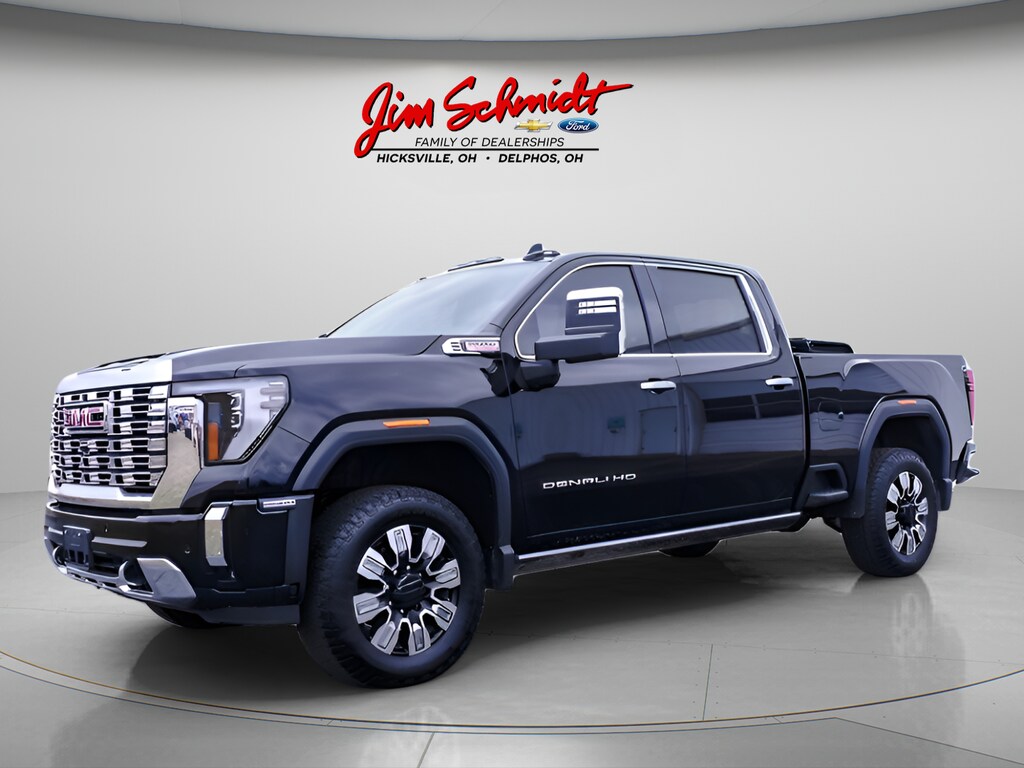 2025 GMC Sierra 2500HD Denali Clean CARFAX. Duramax 6.6L V8 Turbodiesel 4D Crew Cab 4WD 10-Speed Automatic Denali Apple Carplay / Android Auto, Serviced, Inspected & fully detailed, 12-Way Power Driver Seat Adjuster w/Lumbar, 12-Way Power Passenger Seat Adjuster w/Lumbar, 120-Volt Bed Mounted Power Outlet, 120-Volt Instrument Panel Power Outlet, 2 Charge-Only Rear USB Ports, 2 Charge/Data USB Ports Inside Center Console, 2 USB Ports, 2-Speed Active Transfer Case, 3.73 Rear Axle Ratio, 4-Wheel Disc Brakes, 7 Speakers, ABS brakes, Air Conditioning, All-Weather Floor Liners (LPO), Alloy wheels, AM/FM radio: SiriusXM with 360L, Apple CarPlay/Android Auto, Auto High-beam Headlights, Auto-dimming door mirrors, Auto-dimming Rear-View mirror, Automatic Emergency Braking, Automatic temperature control, Bed View Camera w/2 Trailer Camera Provisions, Black Front & Rear Molded Splash Guards (LPO), Bose Premium 7-Speaker Sound System, Brake assist, Buckle to Drive, Bumpers: body-color, Compass, Deep-Tinted Glass, Delay-off headlights, Denali Reserve Package, Driver door bin, Driver Memory, Driver vanity mirror, Dual front impact airbags, Dual front side impact airbags, Electric Rear-Window Defogger, Electronic Stability Control, Emergency communication system: OnStar, Floor-Mounted Center Console, Following Distance Indicator, Forge Perforated Leather-Appointed Front Seat Trim, Forward Collision Alert, Front anti-roll bar, Front Bucket Seats, Front Center Armrest, Front dual zone A/C, Front fog lights, Front Pedestrian Braking, Front Rain-Sensing Wipers, Front reading lights, Front wheel independent suspension, Fully automatic headlights, Garage door transmitter, Genuine wood dashboard insert, Genuine wood door panel insert, GMC Protection Package (LPO), Gooseneck/5th Wheel Prep Package, HD Surround Vision, Heated 2nd Row Outboard Seats, Heated door mirrors, Heated Driver & Front Outboard Passenger Seats, Heated front seats, Heated rear seats, Heated steering wheel, Heavy-Duty 80 Amp Battery, Hill Descent Control, Hitch Guidance w/Hitch View, Illuminated entry, In-Vehicle Trailering System App, Inside Rearview Auto-Dimming Rear Camera Mirror, IntelliBeam Automatic High Beam On/Off, Keyless Open & Start, Lane Departure Warning System, LED Cargo Area Lighting, LED Smoked Amber Roof Marker Lamps, Low tire pressure warning, Manual Tilt-Wheel/Telescoping Steering Column, Max Trailering Package, Memory seat, Multicolor 15" Diagonal Head-Up Display, Occupant sensing airbag, Off-Road Suspension, OnStar Services Capable, Outside temperature display, Overhead airbag, Overhead console, Panic alarm, Passenger door bin, Passenger vanity mirror, Pickup Box, Polished Exhaust Tip, Power door mirrors, Power driver seat, Power Front Passenger Windows w/Express Up/Down, Power passenger seat, Power Sliding Rear Window w/Defogger, Power steering, Power Sunroof, Power windows, Preferred Equipment Group 5SA, Push Button Start, Radio: AM/FM w/Premium GMC Infotainment System, Rain sensing wipers, Rear Cross Traffic Alert, Rear reading lights, Rear seat center armrest, Rear step bumper, Rear Wheelhouse Liners, Rear window defroster, Remote keyless entry, Remote Vehicle Starter System, Safety Alert Seat, Security system, Signature Chrome Denali Grille, SiriusXM w/360L Trial Subscription, Speed control, Speed-sensing steering, Split folding rear seat, Spray-On Pickup Bedliner w/GMC Logo, Steering Wheel Audio Controls, Steering wheel mounted audio controls, Tachometer, Technology Package, Telescoping steering wheel, Tilt steering wheel, Traction control, Trailer Cam Provisions & Trailer Viewing Software, Trailer Side Blind Zone Alert, Trip computer, Turn signal indicator mirrors, Ultrasonic Front & Rear Park Assist, Unauthorized Entry Theft-Deterrent System, Universal Home Remote, Variably intermittent wipers, Ventilated Driver & Front Passenger Seats, Ventilated front seats, Voltmeter, Wheels: 20" Ultra Bright Machined, Wireless Charging, Wireless Phone Projection, X
